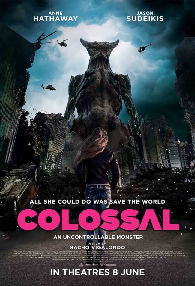 Film Colossal garapan Nacho Vigalondo mungkin menjadi salah satu film kaiju paling unik yang pernah dibuat. Dirilis pada tahun 2016, film ini menggabungkan kehancuran akibat monster raksasa dengan rama personal yang menyentuh. Anne Hathaway berperan sebagai Gloria, seorang wanita yang sedang berjuang melawan kecanduan alkohol dan krisis hidup. Saat kembali ke kampung halamannya, ia menemukan fakta mengejutkan bahwa setiap gerakannya secara misterius mengendalikan monster raksasa yang tengah mengamuk di Seoul, Korea Selatan.