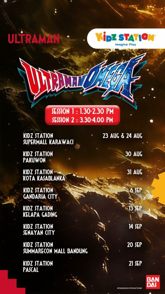 Ultraman Omega siap kembali turun ke tanah air untuk menyapa para penggemarnya. Acara spesial ini bakal digelar di beberapa lokasi Kidz Station terpilih, lengkap dengan berbagai aktivitas menarik yang sayang banget kalau dilewatkan.
